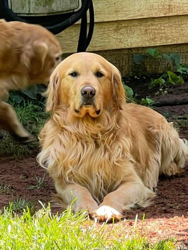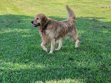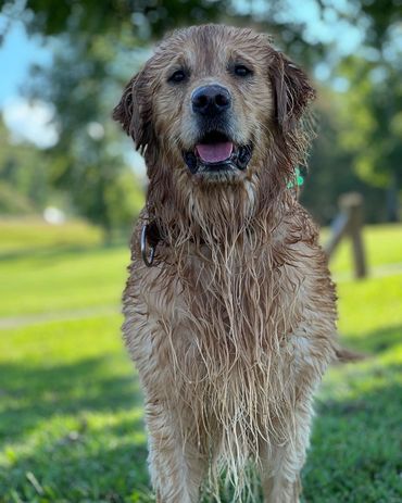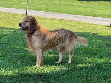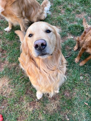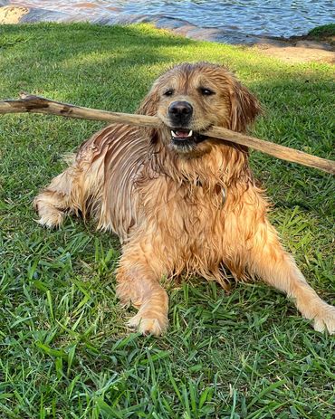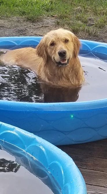 most innocent and loving boy. Small dogs love him because while he is huge, he is very very very gentle and sweet with all our babies. He loves kids, sticks that are too big for him even, water and long car rides. He is a great companion and all of his offspring seem to boast the same qualities. Gunner is our biggest golden but shhhh he still doesn’t know that! We love this boy and his calm temperament and demeanor more than words can say!